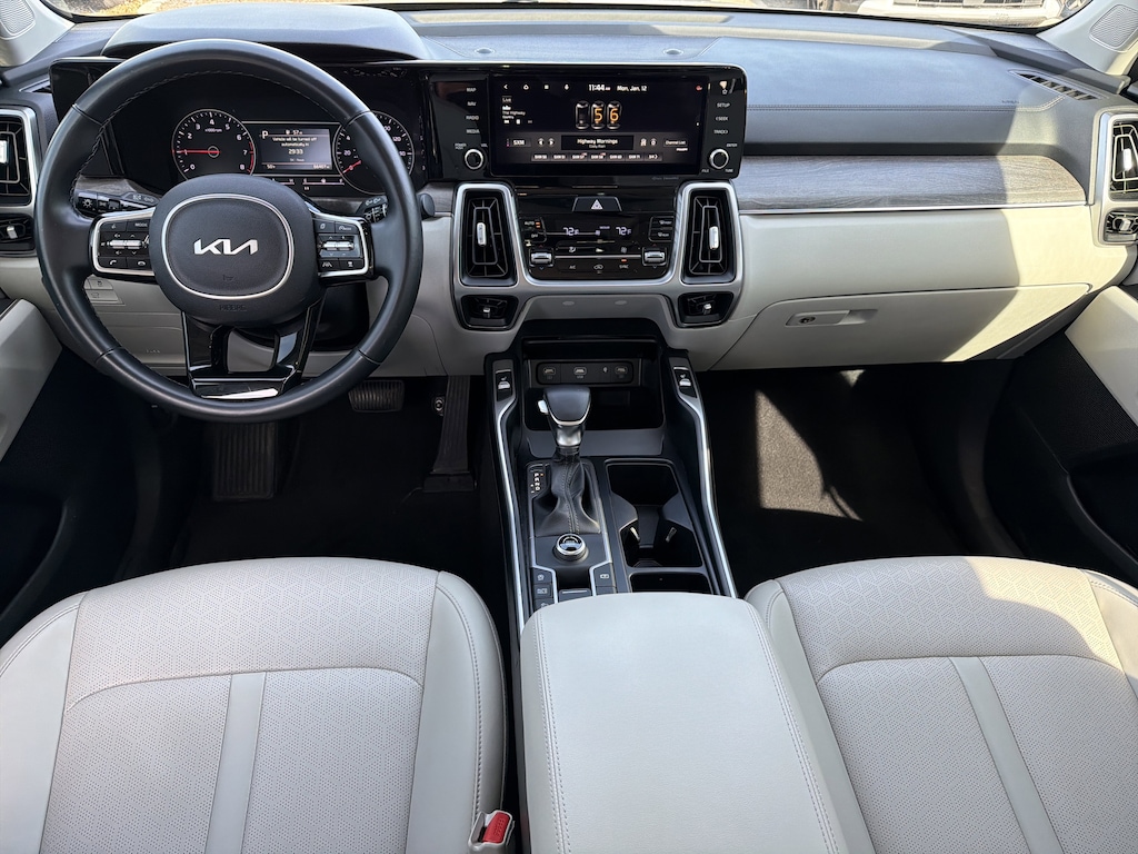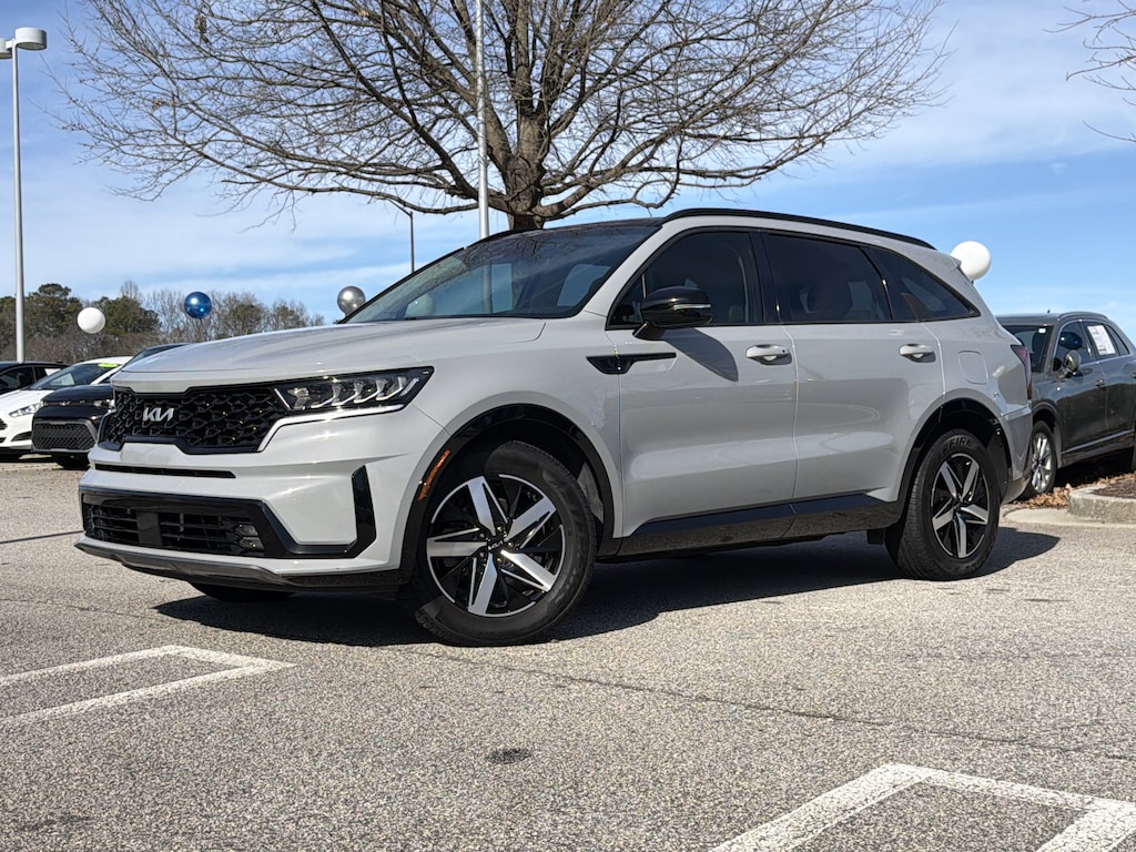 MUST SEE!!! This 2022 Kia Sorento EX is a well-equipped three-row SUV featuring a turbocharged 2.5L 4-cylinder engine, offering a good balance of power, fuel efficiency (around 22/29 MPG city/highway), and practicality with available All-Wheel Drive (AWD). Key features include a larger 10.25-inch touchscreen, Apple CarPlay/Android Auto, wireless charging, heated front seats with power adjustments, second-row captain's chairs, a Smart Power Liftgate, and advanced safety tech like enhanced auto emergency braking and driver assists, making it a strong mid-range choice for families.Performance & Drivetrain